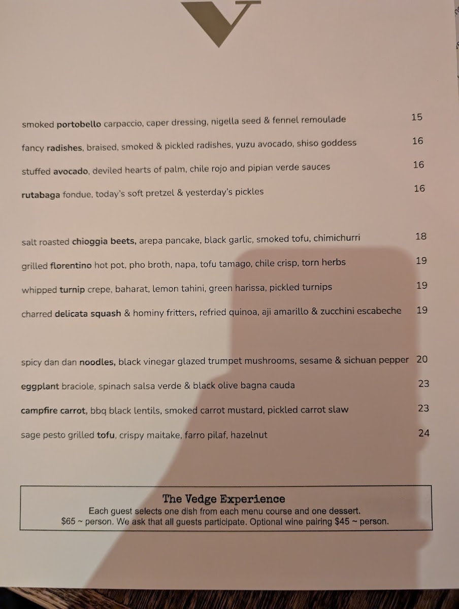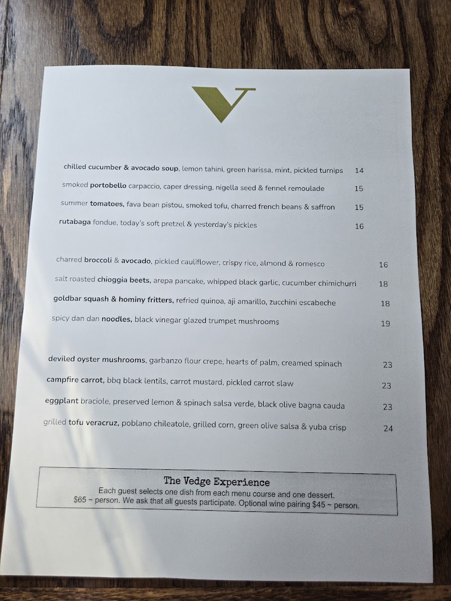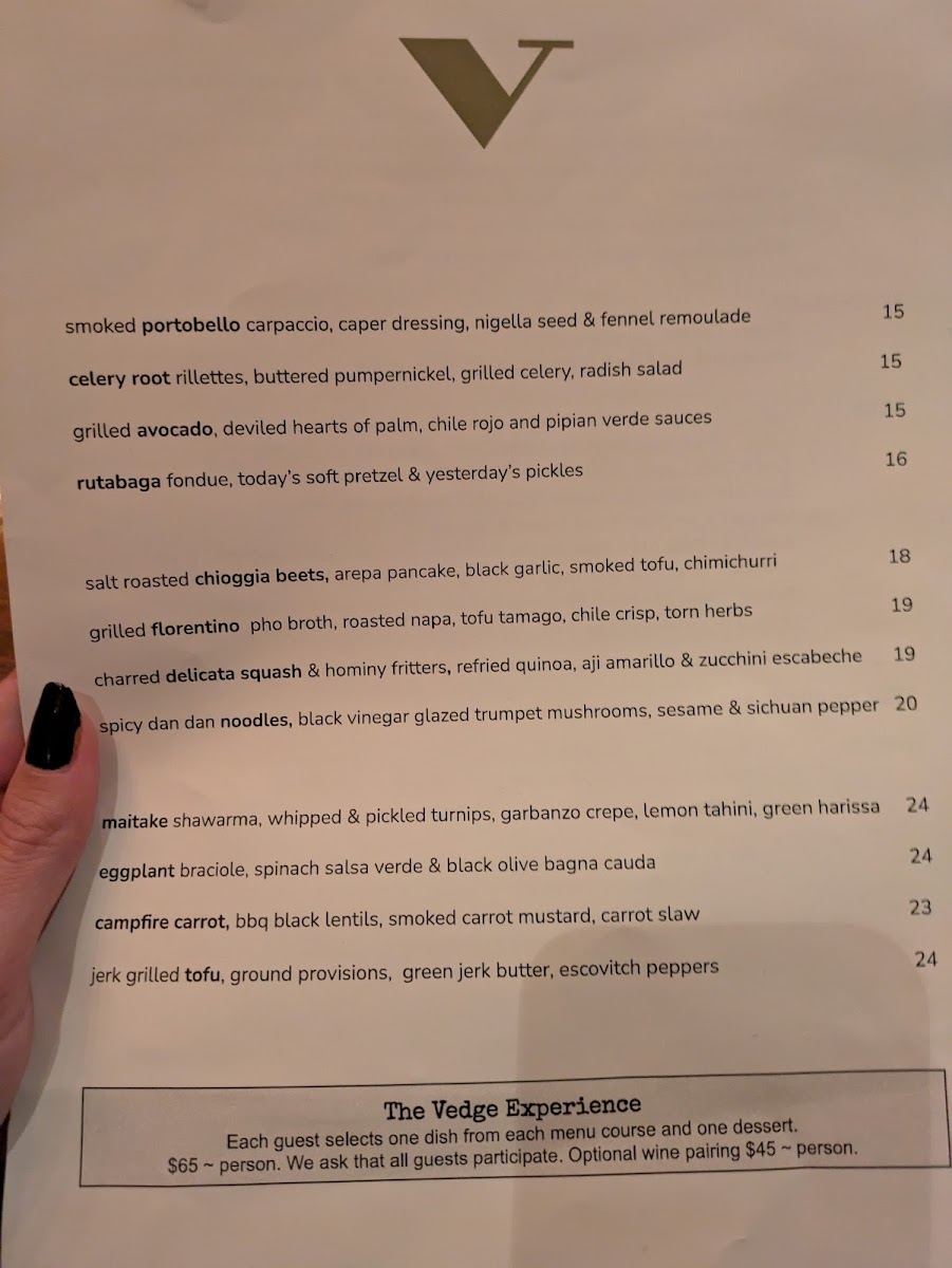 The dinner menu at Vedge is a journey through flavor profiles, showcasing the chef's dedication to fresh, seasonal ingredients. Indulge your senses with starters like Deviled Hearts of Palm adorned with heirloom tomatoes, grilled poblano, and green tomato aguachile for $13.00, or the Smoked Portobella Carpaccio featuring caper vinaigrette, fennel remoulade, and nigella seed for $14.00. Each dish is expertly crafted to highlight the natural flavors of the ingredients, proving that plant-based doesn’t mean compromising on taste or creativity.