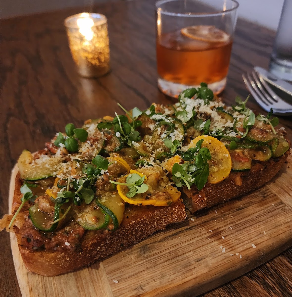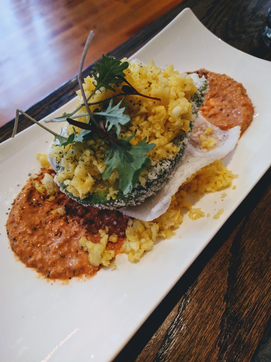 For mains, try the Stuffed Avocado ($14.00) that combines smooth almond romesco with pickled cauliflower and crispy rice, or the Rutabaga Fondue ($15.00) served alongside today's soft pretzel—pure comfort food taken to new heights. The smoky notes of Charred Delicata Squash immerse you in deep, rich flavors that satisfy without weighing you down.